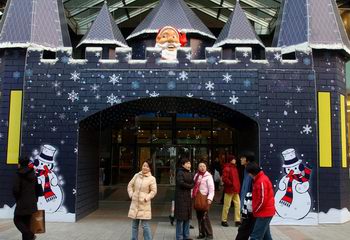 这是北京王府井一家商店门前搭起的“圣诞屋”