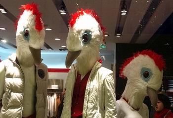 北京“东方新天地”商城中的一家服装店用火鸡的造型装扮服装模特,以吸引消费者