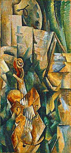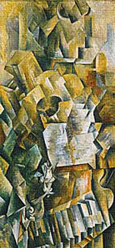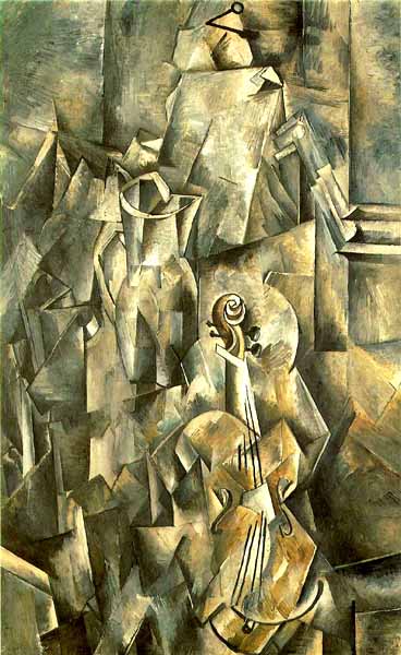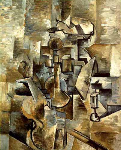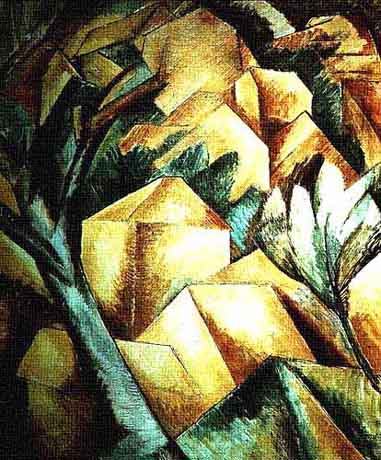 立体主义抛弃了过去的一切视觉,恢复了绘画的自主,使画成为一种建筑,使对象成为某种比现实还要真实之物.在这一行动中,勃拉克起了主要作用。他比所有其他的立体派画家更多地带来不可缩减的具体和一针见血的分析,带来少有的和谐色彩和他的任何同伴都无能为力的典雅流畅的线条。 1909年是立体主义的真正开端。立体主义的核心思想是实际物体的实验,人和物是中心所在;他们所表现出的形式,并非物体真实的再现,而是逐一加以分解所做的再现,最后,分解本身反而取得了优势。立体主义拒绝了传统绘画中对光和空气的表现与描绘,拒绝了三维空间透视,而创造了一种多维的浅透视,用许多相交的面(四方形、三角形、半圆形等)来表现物体。他们从多个视点同时观察被表现的物体,从而使其后面、侧面等各个面能同时展现在观众面前。按照他们的观点,立体主义绘画中不仅表现了物体的外在形象,而且还向人们揭示了关于物体本身的有关知识。