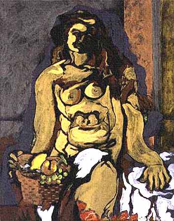 在他的野兽主义里,含有异端分子的急躁.在这一时期,他甚至仅用单色创作了几幅画,预示着1910-1911年的单色构图.他的创作很快就表现出使其同学们感到陌生的知识要求.从1907年起,他在埃斯塔克画的风景受到塞尚影响,并独具特色.在这些画面上,曲线和重色伴着许多多角直线,几何结构,更为微妙的色彩和淡薄涂层.就这样,当毕加索以其作品《亚威农的少女》开始新的转折时,他也正在为立体派运动进行准备.但勃拉克并未因此而否认了野兽主义的成就,恰恰是它们使他避免了毕加索防不胜防的严肃和呆板.因此,他当时的和后来的作品都具有引人入胜的复杂性和饶有趣味的雅致.